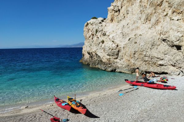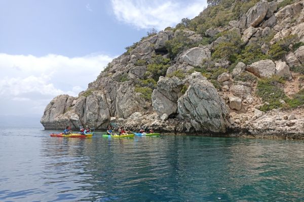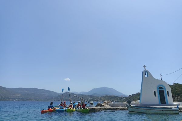 Our adventure starts at Alkyonidos beach, at 10.30am. Certified guides will give a short lesson on the beach, on the proper use of paddles and kayaks at sea. Then we are ready to go to sea and start our adventure.