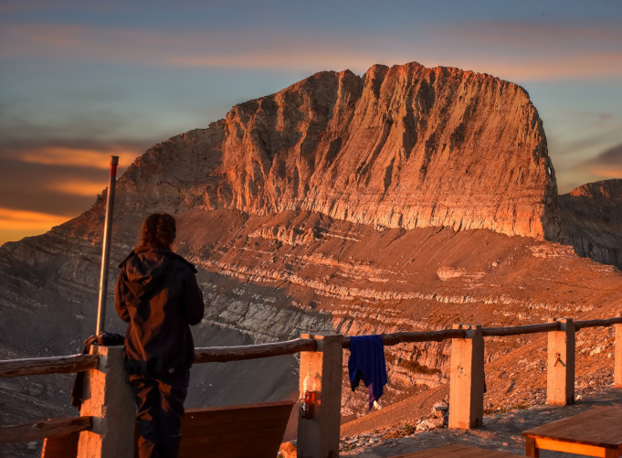 The day starts early as you need to hike up the Muses plateau, named after the inspirational goddesses of literature, science, and the arts. During this 4-5 hour stunning hike you see how the mountain’s ecosystem transforms, from dense forest to alpine terrain, as you head towards higher altitudes. A small but friendly refuge will accommodate you ideal to have a break to get acquainted with the space, get a warm tea, or socialise with local climbers.